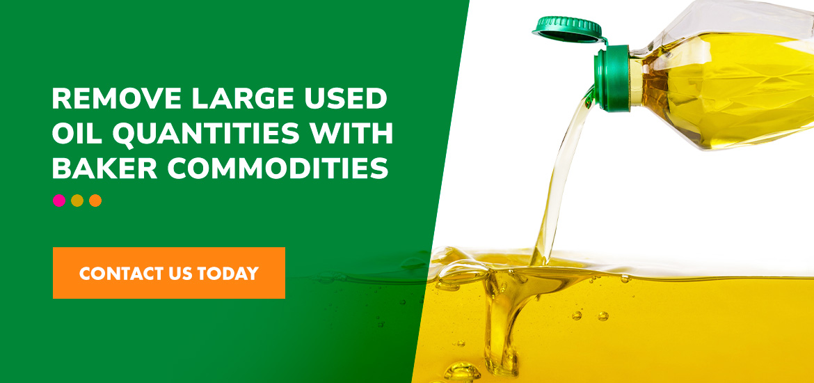 For larger used oil removal, such as in restaurants that fry many dishes daily, you can trust Baker Commodities to help you responsibly dispose of your oil. With the help of safe bulk oil disposal to clear your restaurant kitchen of leftover deep frying messes, you can get back to creating delicious meals in no time. This method is the best course of action to save your drains and plumbing from becoming backed up or violating state oil disposal laws.